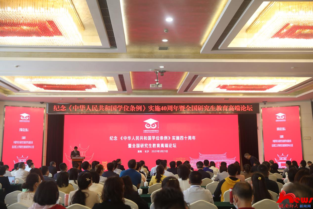 (記者 蔡頌 董飛 王盛嘉 蘇拉)2021年5月21日,由北京理工大學研究生教育研究中心、北京大學中國博士教育研究中心、學位與研究生教育雜志社、湖南師范大學主辦的紀念《中華人民共和國學位條例》實施四十周年暨全國研究生教育高端論壇在長沙隆重舉行。來自教育部學位管理與研究生教育司、部分省市教育行政主管部門、全國部分高校和科研院所的200余名代表齊聚長沙,共話新時代研究生教育高質(zhì)量發(fā)展。