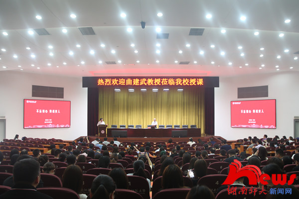 聘任儀式結(jié)束后,曲建武開展以“不忘初心 鑄魂育人”為主題的專題講座。他從大學(xué)文化、政治視野和辦人民滿意的高等教育三方面闡述了高校輔導(dǎo)員的價(jià)值和意義。他指出,“鑄魂育人”就是要求教師堅(jiān)定理想信念,把握思想脈搏,腳踏實(shí)地工作,把愛黨愛國(guó)教育放在首位,教育學(xué)生為實(shí)現(xiàn)中國(guó)夢(mèng)而奮斗,同時(shí)注重少數(shù)民族學(xué)生的情況,維護(hù)民族團(tuán)結(jié)。他強(qiáng)調(diào),教師在提高自身科研水平的同時(shí),必須不忘做好學(xué)生工作,關(guān)心學(xué)生生活;教師應(yīng)在網(wǎng)絡(luò)思想教育、遵紀(jì)守法意識(shí)、體育鍛煉等多方面加強(qiáng)學(xué)生管理工作,促進(jìn)學(xué)生綜合發(fā)展。