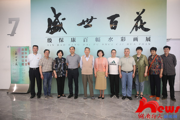 孔寅湘、黃孝亮一行首先來到湖南美術館參觀了慶祝建黨100周年“盛世百花”殷保康教授水彩畫展,看望慰問了殷保康教授。美術學院退休黨支部書記兼關工委常務副主任胡師正教授從“一個有溫度的展覽,一個有情懷的展覽,一個有藝術格調的展覽,一個有藝術傳承的展覽”等4個方面介紹了殷保康教授創作“百花圖為黨獻禮”的初衷和藝術內涵。