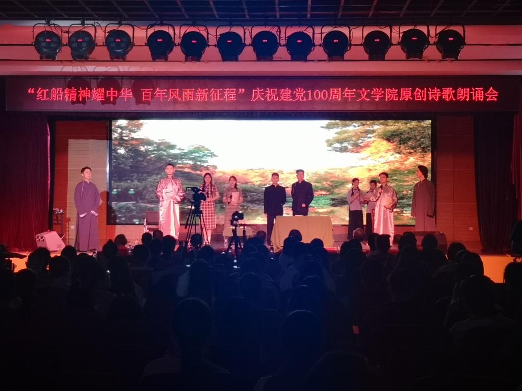 (通訊員 歐警安)為慶祝中國共產黨成立100周年,推動黨史學習教育深入開展,做到學史明理、學史增信、學史崇德、學史力行,6月21日晚,文學院在江邊活動中心舉辦“紅船精神耀中華 百年風雨新征程”——慶祝建黨一百周年文學院原創(chuàng)詩歌朗誦會。校黨委副書記周俊武出席朗誦會。