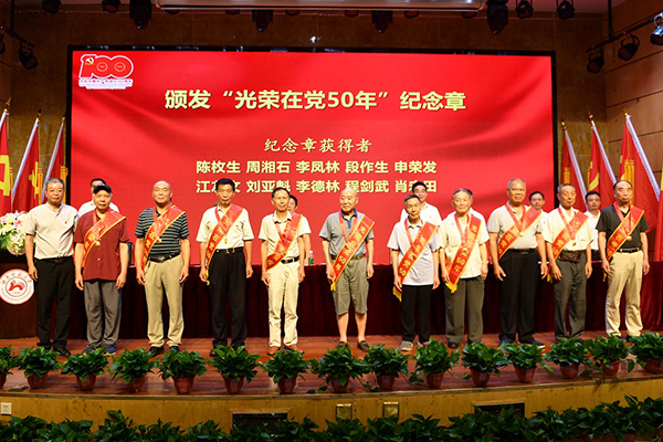 頒發(fā)“光榮在黨50年”紀念章。學(xué)校從6月中旬開始啟動“光榮在黨50年”紀念章的頒發(fā)工作,學(xué)校黨委主要委托各二級黨組織通過召開相關(guān)會議、開展慶祝活動和與走訪慰問黨員結(jié)合起來等方式,向獲得“光榮在黨50年”紀念章的老黨員頒發(fā)紀念章。收到紀念章的老黨員都倍感欣慰和榮光,紛紛通過詩作、頌歌、感言等表達對黨的祝福和對學(xué)校的感恩。兩位百歲老人、老黨員林立炟、汪季昆在收到紀念章時,向黨組織表達了由衷的感激之情。截至7月1日,全部紀念章均已發(fā)放到位。