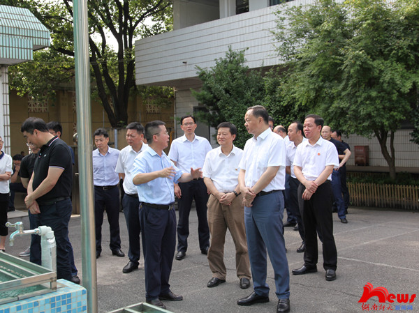鄭建新指出,我校為長沙發展作出了突出貢獻,全市各級各部門要持續加強與我校的校地合作,協同留住更多人才、強化科技創新、抓好產教融合,助推長沙經濟社會高質量發展。特別是要協同建設精美校園,希望我校進一步精心雕琢校園景觀,持續優化校園環境,建設高水平高品質大學校園。各相關部門和岳麓區要持續美化、凈化、靚化周邊環境,支持師大做好基礎設施完善、老舊小區改造、地下網管疏浚等工作,共同打造“精美校園”。大力支持解決我校淡水魚類發育生物學國家重點實驗室育種基地湘江水源取水、建設師大直屬型附屬醫院等問題,盡早組織研究與學校共建藝體中心方案,高質高效推動各項工作落地落實。