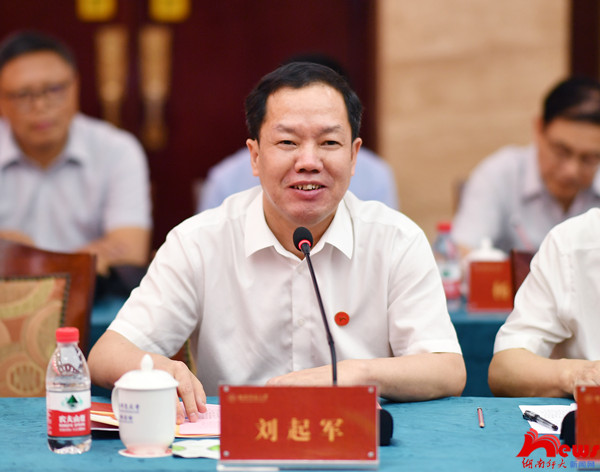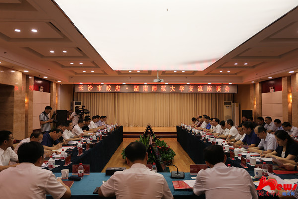 校長劉起軍對鄭建新一行表示熱烈歡迎,對市委市政府以及各位領導長期以來對學校的關心支持表示衷心感謝。他簡要介紹了我校的基本情況以及長沙市對學校的支持、學校助力長沙市發展的情況。他表示,學校將與長沙市進一步深化校地合作,爭取建立全面戰略合作伙伴關系,讓學校建設發展與長沙的繁榮興盛形成更為良性的互動。他懇請市委市政府對我校場館建設和直屬型附屬醫院建設等事項予以支持,學校定將搶抓機遇、主動作為,為助推長沙實現高質量發展和打造“最美大學科技城”貢獻力量和智慧。