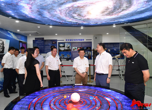 會前,鄭建新一行實地考察了我校淡水魚類發育生物學國家重點實驗室育種基地、外國語言文學世界一流學科建設展廳、天文館等地,詳細了解了學科建設發展情況。