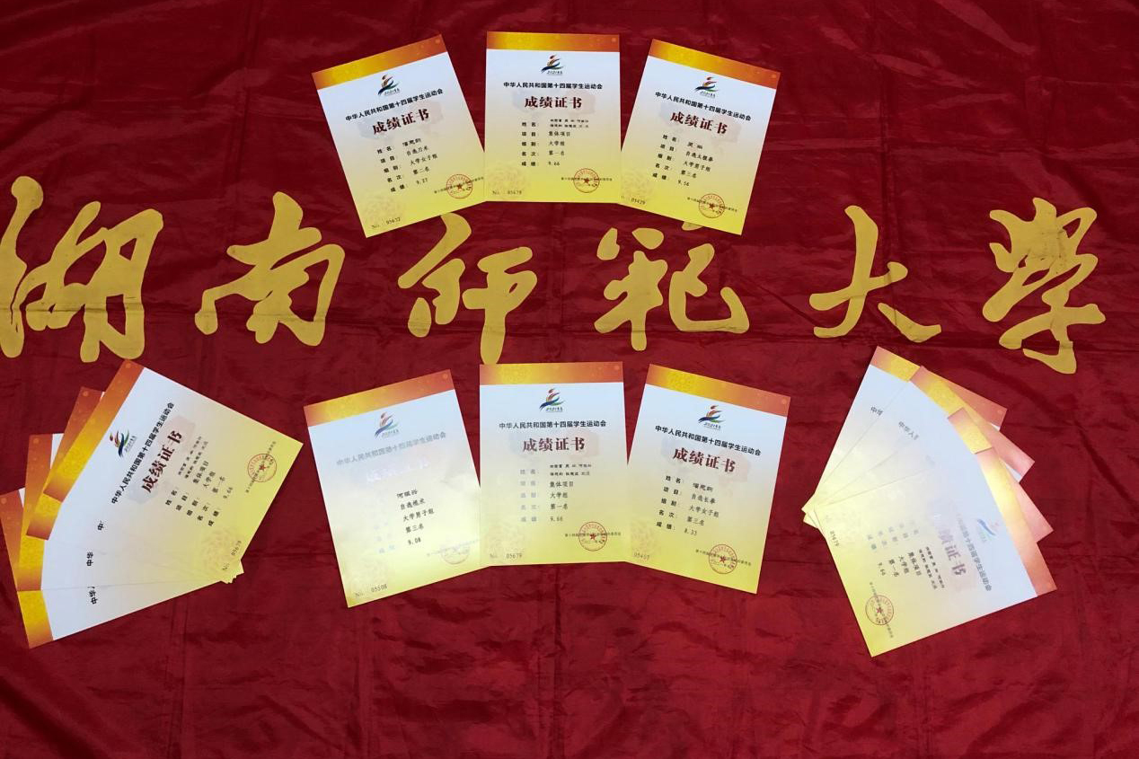 我校武術隊由體育學院黨委副書記李波擔任領隊,雷軍蓉、楊健男兩位老師擔任教練,帶領6名隊員代表湖南省大學組征戰學運會賽場。我校運動健兒們始終堅持“厚載博學、行健自強”的體院精神,奮力拼搏。經過三天的激烈角逐,我校學子不畏強手,奮勇爭先,取得了1金1銀3銅的榮譽,不僅展現了高超的競技水平和湖南大學生精神風貌,也表現出我校學子的奪人風采,創造了武術與民族傳統體育新的佳績。