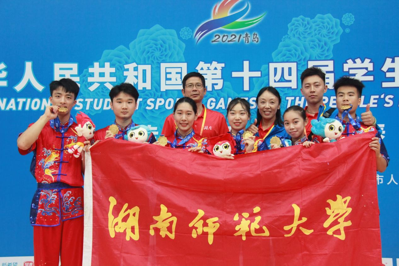 (供稿 體育學院)7月11日至13日,由教育部、國家體育總局和共青團中央聯合主辦,山東省教育廳、青島市人民政府聯合承辦的中華人民共和國第十四屆學生運動會武術比賽在青島十九中體育館舉行并圓滿落幕。我校學子喜獲1金1銀3銅的佳績。