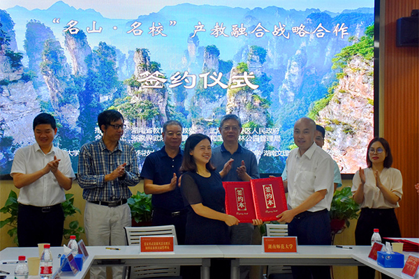 (供稿 旅游學院)7月15日上午,“名山·名校”產教融合戰略合作簽約儀式在我校圖書館信息中心舉行。省教育廳高教處處長曾力勤,張家界市武陵源區委副書記、張管局黨委副書記、常務副局長謝貴湘,我校黨委副書記周俊武出席簽約儀式。儀式由武陵源區委常委、組織部部長謝模強主持。