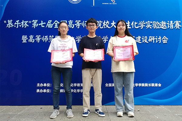 (供稿 化學化工學院)近日,在華中師范大學承辦的“慕樂杯”第七屆全國高等師范院校大學生化學實驗邀請賽中,我校化學化工學院化學專業2018級本科生蘇文韜、馬士蒙榮獲一等獎,秦子怡榮獲二等獎。