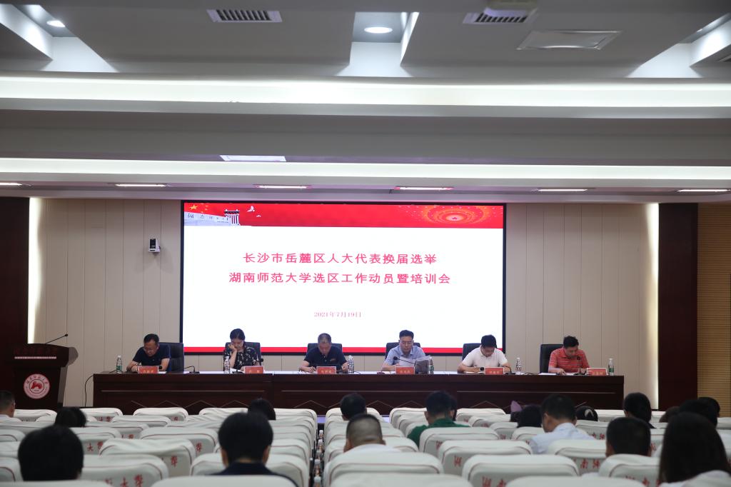 (記者 朱元福 趙一慧)7月19日上午,我校在中和講堂召開長(zhǎng)沙市岳麓區(qū)人大代表?yè)Q屆選舉湖南師范大學(xué)選區(qū)工作動(dòng)員暨培訓(xùn)會(huì),校黨委副書記周俊武出席會(huì)議。會(huì)議由校黨委委員、黨委組織部部長(zhǎng)沈又紅主持。