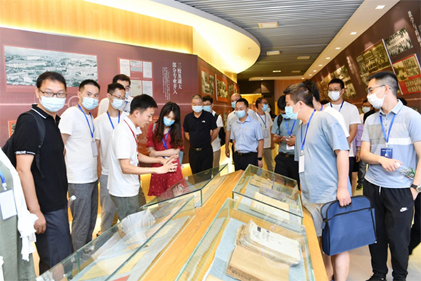 在校史館,交流團(tuán)一行通過觀看展板,聆聽解說(shuō),直觀、生動(dòng)地了解了學(xué)校的歷史沿革、師資力量、對(duì)外交流、素質(zhì)教育和學(xué)科建設(shè)等方面的情況。周俊武陪同參觀,向嘉賓們介紹學(xué)校的歷史,生動(dòng)講解學(xué)校發(fā)展中的重要人物和事件,表達(dá)了對(duì)優(yōu)秀海歸人才的熱烈歡迎。
