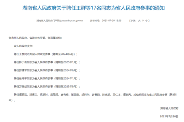 (供稿 黨委統戰部)近日,湖南省人民政府下發通知,聘任我校文學院湯素蘭、旅游學院許春曉兩位教授為省人民政府參事,此次全省共17人受聘。