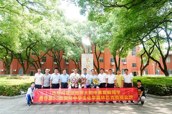 截至目前,我校附中學生參加中學生化學奧林匹克競賽共獲得國際金牌10枚、銀牌3枚,獲得化學學科國際金牌和獎牌總數均位列全國第一。我校附中學生參加中學生數學、物理、化學、生物、信息、地理學科奧林匹克競賽共奪得金牌34枚(含數學8枚、化學10枚、物理9枚、生物6枚、地理1枚)、銀牌10枚(含數學4枚、化學3枚、生物2枚、地理1枚)和亞洲金牌11枚(含物理10枚、信息1枚)。國際金牌和獎牌總數穩居全國第一。