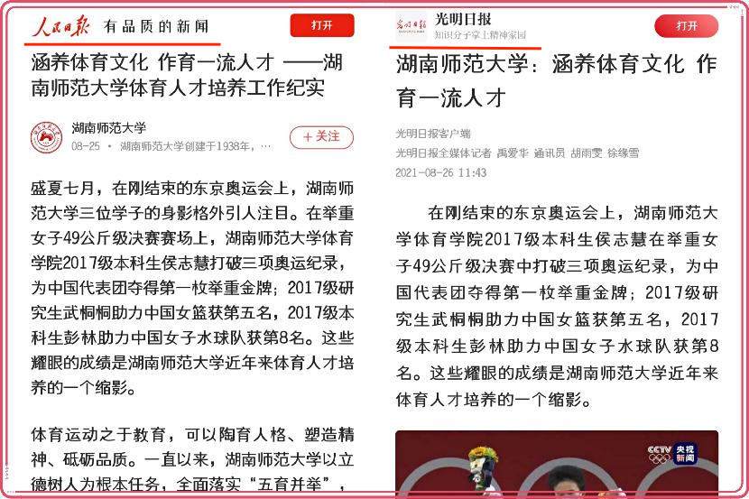 今日頭條:《東奧會三位奧運健兒背后:看湖南師范大學如何培養體育人才》