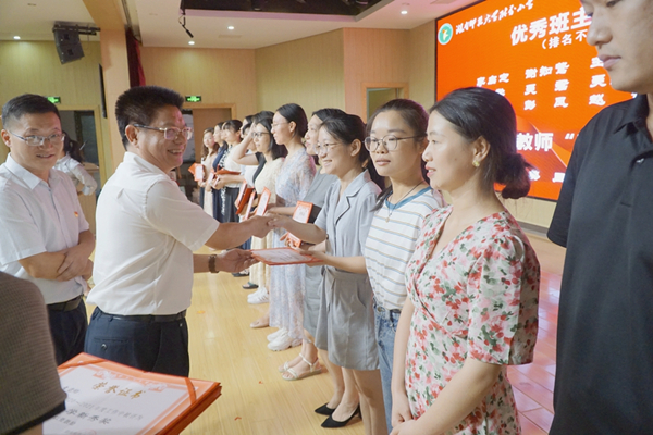 周凱興宣讀了“優秀班主任獎”和“青年教師新秀獎”,現場領導為優秀班主任和青年教師等頒獎。