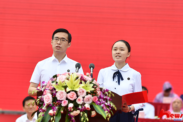 歷史文化學院2021級碩士研究生章海晨同學,世承書院2021級本科生戴欣宇同學作為新生代表發言。他們表示在未來的日子里,將充分利用學校提供的優質平臺和資源,發揮特長,展現風采,不負青春,身許家國,為祖國、為民族、為人民、為人類不懈奮斗。