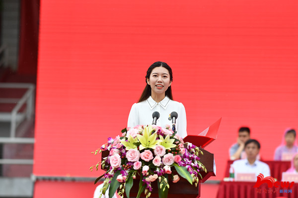 教育部長江學者特聘教授、中國科學院百人計劃研究員、博士生導師、物理與電子科學學院景輝教授作為教師代表發言。他結合自身經歷,與同學們分享做人做事做學問的道理。一是寧拙毋巧,二是講信修睦。他希望同學們都能秉持“仁愛精勤”的校訓,勇于擔當,將個人發展與所在集體甚至國家命運聯系在一起,努力修好人生基本功,做有理想、有追求的大學生,做有品質、有修養的大學生。