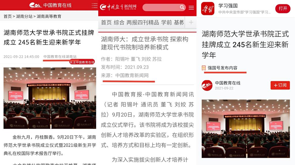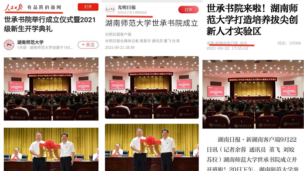 學習強國:《湖南師范大學世承書院正式掛牌成立245名新生迎來新學年》