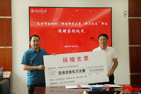 王輝對長沙市婦幼保健院給予我校工作的支持表示感謝。他指出,醫院和學校在人的身體和心靈方面的育人工作具有相通性,我校“仁愛精勤”校訓與婦幼保健院“厚德勤于道,精醫惠婦孺”院訓的不謀而合是一種緣分,也是一份默契。學校會充分用好捐贈資金,在最大程度上發揮“師大之星”活動對于培養全面發展的人才的獨特優勢。