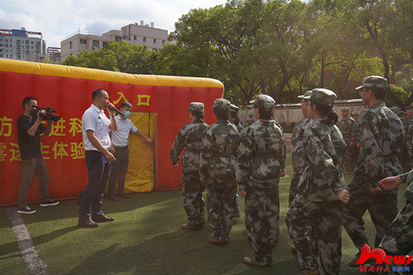 同學們在工作人員的指揮下,依次進入煙道逃生模擬室和模擬滅火體驗館進行消防演習。