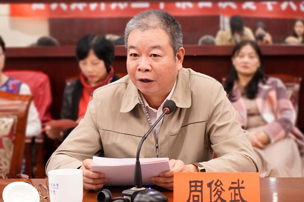 周俊武代表學校黨委、行政向大會的勝利召開和新當選的民盟師大第十三屆委員會班子成員表示祝賀,對民盟師大委員會一直以來為學校發展所作出的突出貢獻給予充分肯定。他寄語民盟新一屆委員會及全體盟員:要同心同德,努力發揚黨派優良傳統;要務實擔當,切實加強自身建設;要凝神聚力,積極助推學校改革發展。要在民盟省委和學校黨委的領導下,進一步夯實共同思想政治基礎,不忘合作初心,繼續攜手前進,為共同譜寫統一戰線和多黨合作事業發展新篇章而努力奮斗。