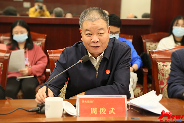 周俊武代表學校黨委、行政向大會的勝利召開和新當選的校知聯會常務理事會班子成員表示祝賀,對校知聯會一直以來為學校發展所做出的突出貢獻給予充分肯定。他對新一屆常務理事會提出建議和希望:要加強思想政治引領,堅定理想信念;要努力提高服務水平,發揮蓄水池作用;要切實加強自身建設,激發基層活力。要在省委統戰部和學校黨委的正確領導下,進一步夯實基層基礎,積極履職建言服務社會,為學?!半p一流”建設和湖南“三高四新”戰略發展作出積極貢獻。