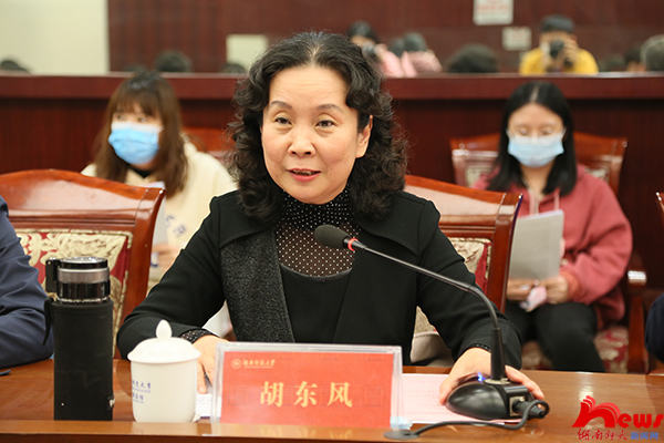 胡東風充分肯定了我校統一戰線工作取得的成績,對會議的勝利召開和新一屆常務理事會的當選表示祝賀。她強調知聯會工作一定要認真學習貫徹《中國共產黨統一戰線工作條例》,加強思想政治建設,重視人才工作。同時,她寄語新一屆常務理事會及全體會員:一是希望大家胸懷“兩個大局”,做廣泛凝聚共識的參與者;二是希望大家發揮專業優勢,做積極資政建言的智多星;三是希望大家向袁隆平同志學習,做推動創新發展的實干家。