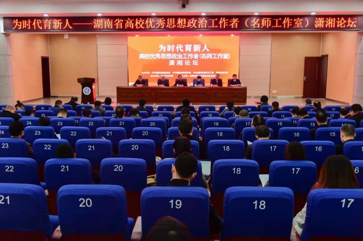 此次論壇由湖南省委組織部、省委宣傳部、省委教育工委、省教育廳聯合主辦,湖南科技學院承辦,湖南省高校思想政治教育研究會協辦,來自省內外高校的70余名專家領導、湖南思政名師、全省首屆最美思政課教師和最美輔導員參加會議。