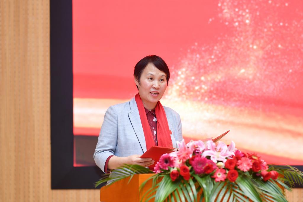 校友代表、全國優秀共產黨員、全國抗擊新冠肺炎疫情先進個人徐芙蓉表達了對母校的感激之情。她說,母校深厚的文化底蘊、勤勉求實的學風、老師和同學的深厚情誼,使其終身受益。她表示必將始終牢記自己的根在哪里,并繼續將湖南師范大學精神綿延賡續、發揚光大。