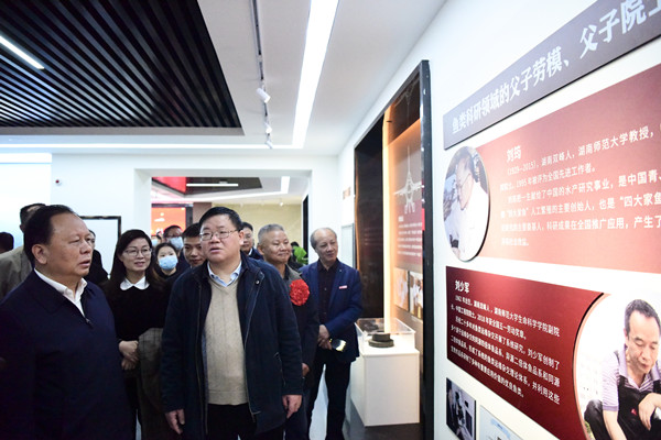 周農在觀展時頻頻贊許,他表示,劉筠、劉少軍是我國魚類研究領域唯一的父子勞模、父子院士,他們是高校戰線的杰出代表,是湖南師大的驕傲,更是湖南的驕傲。他勉勵廣大勞動者弘揚勞模精神,賡續奮斗力量,開拓思維、積極創新、攻堅克難,努力為實施“三高四新”戰略、奮力建設現代化新湖南貢獻力量。