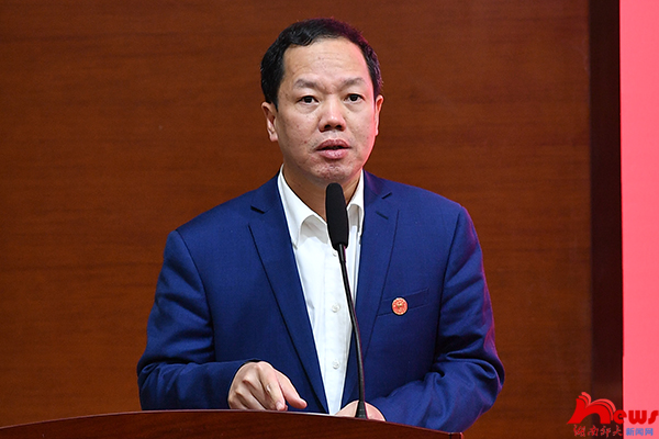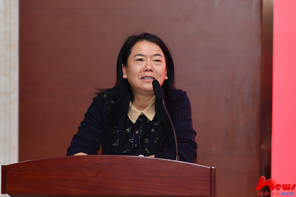 第一場專題報告以“清廉高校建設應該注意把握的幾個問題”為題,著重從“清廉湖南”建設的初衷、具體要求以及為什么推進“清廉校園”建設等問題進行全面闡述。特別強調,在建設“清廉校園”過程中要注意四個問題:一是要堅定政治方向,以中華民族偉大復興為使命,將立德樹人作為根本任務;二是要立足學校實際,傳承湖湘人文精神,營造立德樹人的良好環境,服務好湖南“三高四新”戰略;三是要堅持把握問題導向,注意政治建設、校園腐敗等問題;四是要抓準可行抓手,以理論武裝、師德師風、黨建引領為著力點。