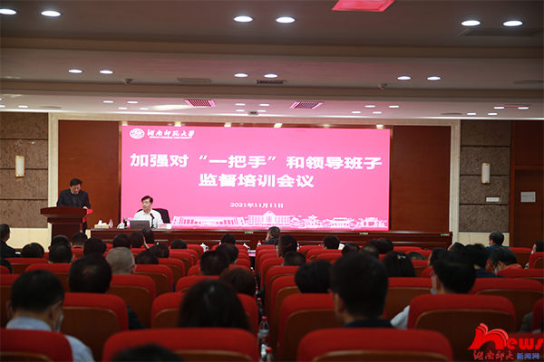 (記者 鄧圣曦 廖子璇 劉姣 丁美玲)11月11至12日,學校在中和樓342報告廳召開加強對“一把手”和領導班子監督培訓會議。省紀委監委駐省教育廳紀檢監察組組長曹世凱,學校校長劉起軍、黨委副書記周俊武、副校長唐賢清、黨委委員沈又紅、段巍出席會議。校黨委書記蔣洪新、紀委書記姚春梅主持會議。