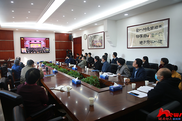 (記者 馬鐵泉 劉小松)11月25日上午,中國共產黨湖南省第十二次代表大會在長沙隆重召開。校黨委書記蔣洪新、校長劉起軍參加現場會議,全體在家校領導以及校黨委理論學習中心組成員在校辦公樓二會議室集中收看了大會直播。各二級黨組織分別組織各單位師生通過網絡直播、微博、微信、客戶端等平臺收看收聽了大會盛況。