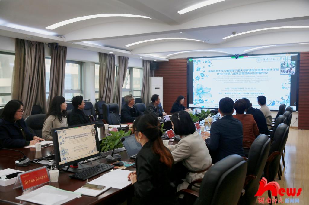 我校與格林卡音樂學(xué)院相關(guān)單位負(fù)責(zé)人參加會(huì)議。