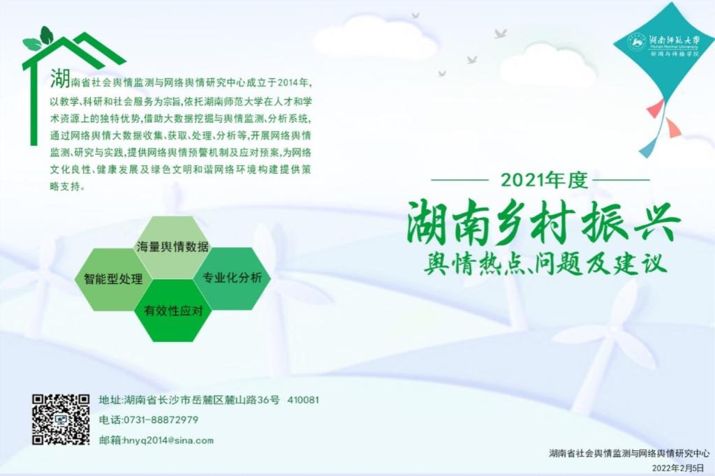 (通訊員 段峰峰)近日,湖南省社會輿情監測與網絡輿情研究中心聯合我校網絡與新媒體系、內參研究中心根據2021年度湖南省鄉村振興網絡輿情數據的分析,共同完成了《2021年度湖南鄉村振興輿情分析報告》,并在此基礎上形成并發布了《2021年度湖南鄉村振興輿情熱點、問題及建議》,不僅為洞悉我省鄉村振興輿情信息及輿情應對提供了參考,同時也為黨和政府開展鄉村振興工作提供了策略支持。