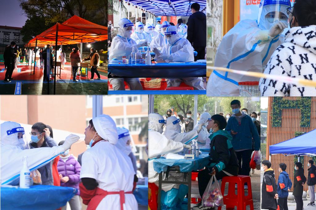 此輪全員核酸人數多、時間緊、任務重。學校疫情防控辦緊急出臺相關措施,確保新冠病毒檢測工作的正常開展,各單位有效落實部署。兩小時內,各部門、工作人員快速行動,完成核酸檢測點的設置、場館布置、醫護人員集結等多項準備工作。在二里半體育館、天馬園區、五舍廣場、德智園、南院校區、師大附中等多個地點共對2萬余名師生完成了檢測。