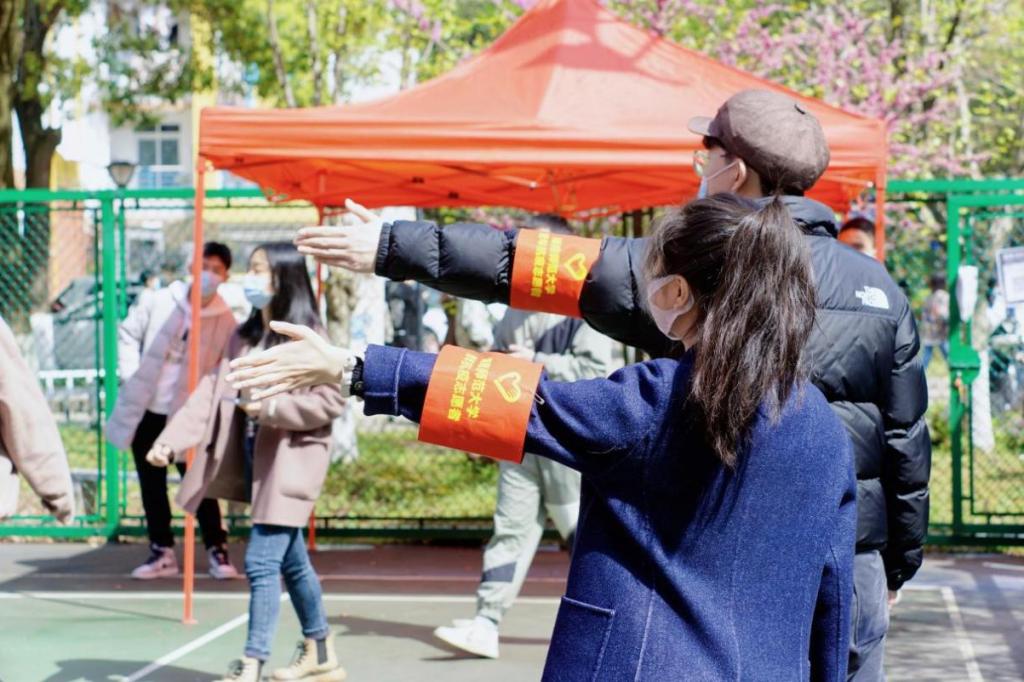 二是團聚青年志愿者,吹響青年抗疫“集結號”。校團委、 學生工作部(處)以研究生支教團、學生黨員、團學干部、女子國旗護衛隊、教官隊、文明使者服務隊為骨干,面向全校集結了一批招之能來、來之能戰的青年志愿者隊伍,先后招募學生志愿者 1200余人,聯合研究生院招募的300余名志愿者分別承擔起學校二里半、南院等5個校區以及周邊社區防疫工作中的現場秩序維護、文明勸導、人員聯絡統計、電話流調等工作。截至目前累計服務時長達7000余小時,服務總人數超18萬余人次。