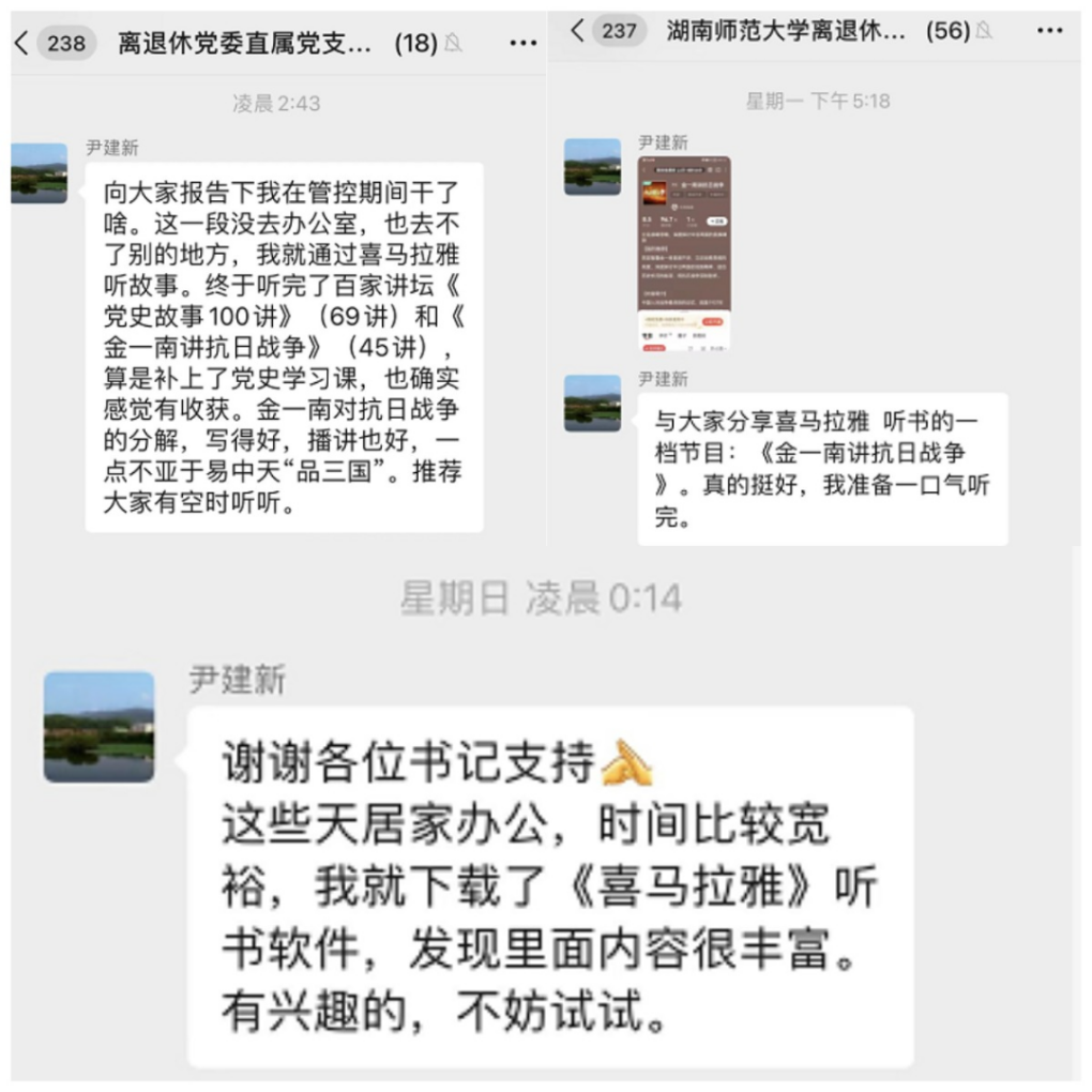 離退休黨委書記尹建新勉勵黨員同志利用聽書軟件居家學(xué)習(xí),推動黨史學(xué)習(xí)教育常態(tài)化長效化,并對百家講壇《黨史故事100講》《金一南講抗日戰(zhàn)爭》做了特別推介。