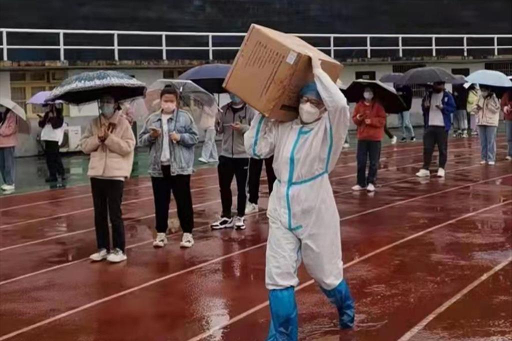 前一天,羅建平還和同事們奮戰在學校最后一輪核酸檢測的一線。恰逢晴天,雖然是四月,但室外溫度已經達到了30℃。“穿著厚厚的防護服站在太陽底下,真的是隨時都會有中暑的風險”,羅建平介紹到,“下雨也很麻煩,一是氣溫低,采集核酸的工作人員容易感冒;二是為了降低傳染風險,采集核酸的場地必須安排在通風的室外,但雨天風也大,加大了采集核酸的難度。”不過結果是很好的,十輪核酸檢測,學校做到了“不漏一人,全員陰性”。