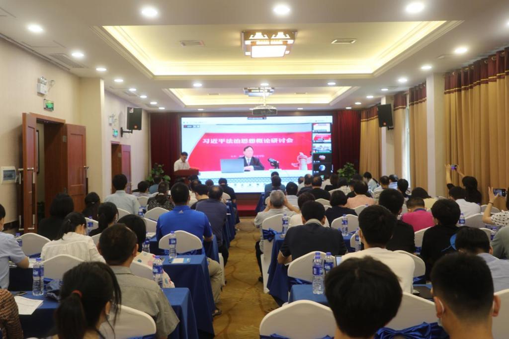 中南大學法學院副院長彭中禮作了題為《習近平法治思想概論教學過程中的“三位一體”》的報告,湖南大學法學院副院長蔣海松作了題為《習近平法治思想概論教學中的道與術》的報告,湘潭大學法學院院長歐愛民作了《習近平法治思想三進的湘大做法》的報告,湖南科技大學法學與公共管理學院副院長宋智敏作了《湖科法學:“五措并舉”推進習近平法治思想入腦入心》的報告。