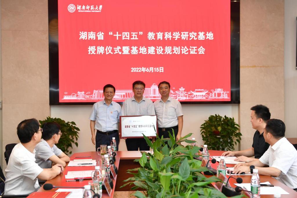 (記者 馬鐵泉 馮振輝)6月15日,我校在教科院會(huì)議室舉行湖南省“十四五”教育科學(xué)研究基地授牌儀式暨基地建設(shè)規(guī)劃論證會(huì)。省委教育工委副書記、省教育廳黨組成員、省教育科學(xué)規(guī)劃領(lǐng)導(dǎo)小組副組長王建華,省教育科學(xué)規(guī)劃領(lǐng)導(dǎo)小組副組長兼辦公室主任、省教育科學(xué)研究院院長石燈明,我校黨委書記蔣洪新出席儀式。授牌儀式由副校長謝資清主持。