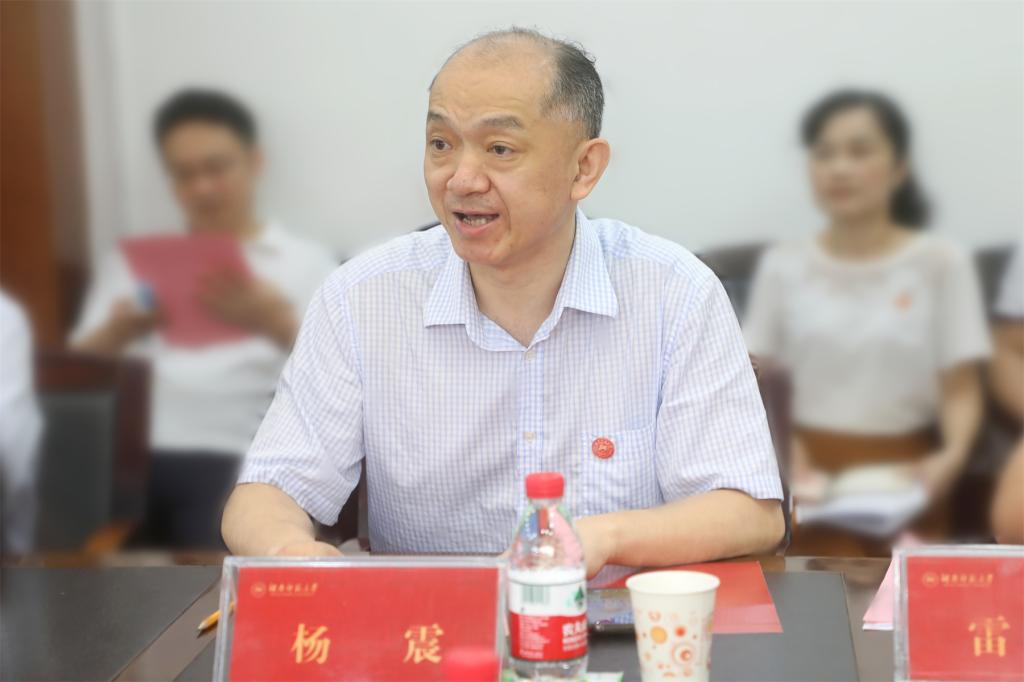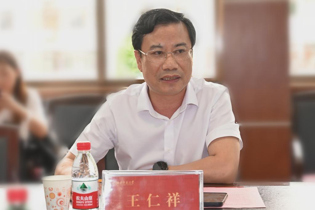 蔣洪新對王仁祥一行表示熱烈歡迎,向教育廳長期以來對我校的厚愛、關心和支持表示感謝。他簡要介紹了學校的基本情況,深情回憶了職業技術學院的建院歷史,并對職業技術學院發展談了三點感受:一是以學科專業為支撐,建設有特色、有底蘊、有基礎、有平臺、有后勁的職業技術學院;二是以創新理念為引領,準定位、強師資、重科研、鑄品牌,實現學院高質量發展;三是以服務社會為使命,扎根湖湘大地,融入時代發展,推出更多豐碩成果,在推進職業教育發展中助力湖南省“三高四新”戰略。