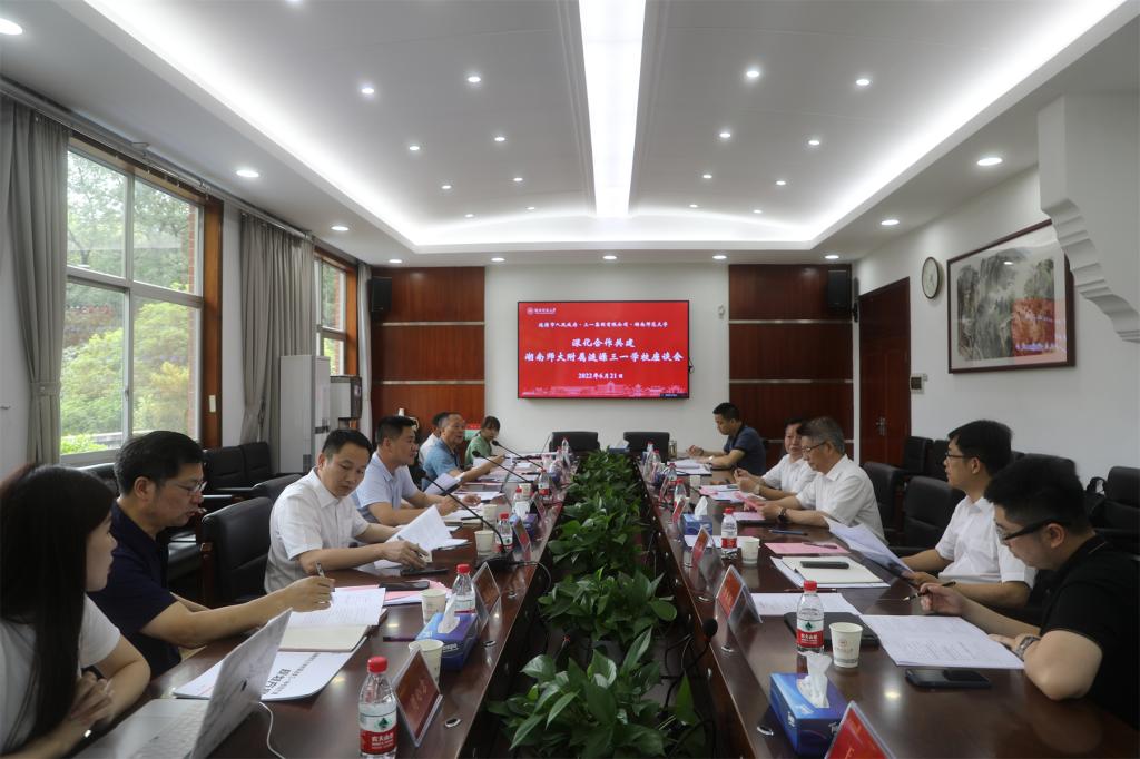 (通訊員 王政)6月21日下午,漣源市、三一集團及我校三方深化合作共建附屬漣源三一學校座談會在我校召開。漣源市副市長周新科,三一集團副總裁、董事長辦公室主任張科,我校副校長唐賢清出席座談會。座談會由我校基礎教育發(fā)展中心主任龔民主持。