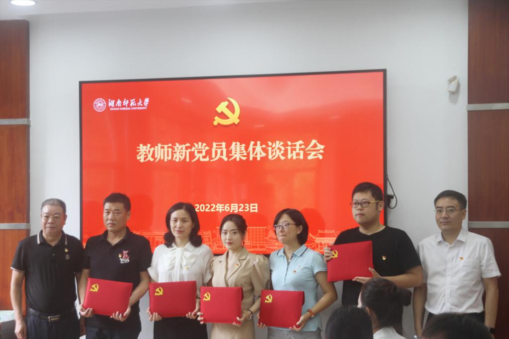 教師新黨員代表、工程與設計學院藝術設計系黨支部黨員、世承人才、湖南省創新創業團隊帶頭人孫舜堯,教師新黨員代表、音樂學院第一黨支部黨員、湖南省“海外青年百人”彭琳琳分別發言。