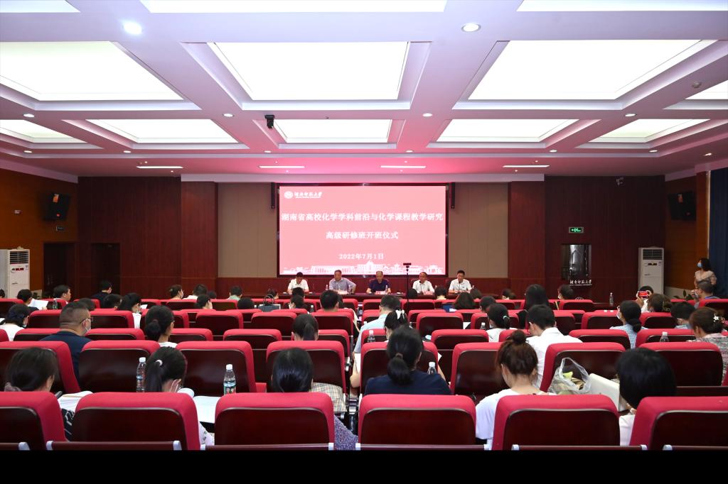 (通訊員 王言平 李佳)7月1日上午,2022年湖南省高校化學學科前沿與化學課程教學研究高級研修班在我校舉行開班儀式。此次開班儀式通過線上線下相結合的形式召開,中國科學院院士、上海交通大學分子醫學研究院院長、中國科學院基礎醫學與腫瘤研究所所長譚蔚泓,天津大學副校長胡文平教授、我校副校長楊震出席儀式。儀式由化學化工學院黨委書記譚東波主持。