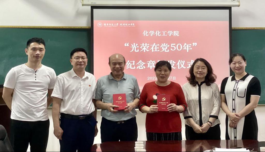 頒發紀念章映初心。學校為截至今年7月1日黨齡滿50年、一貫表現良好的55名老黨員頒發“光榮在黨50年”紀念章,紀念章由各二級黨組織通過舉行儀式或上門頒發等形式送到受章老同志手中,切實增強了廣大老黨員的榮譽感、歸屬感、使命感。廣大受章黨員紛紛表達了對黨組織的感恩之情,通過講黨課等方式講述了自己的初心故事,并表示將繼續發揮黨員作用,老有所為。