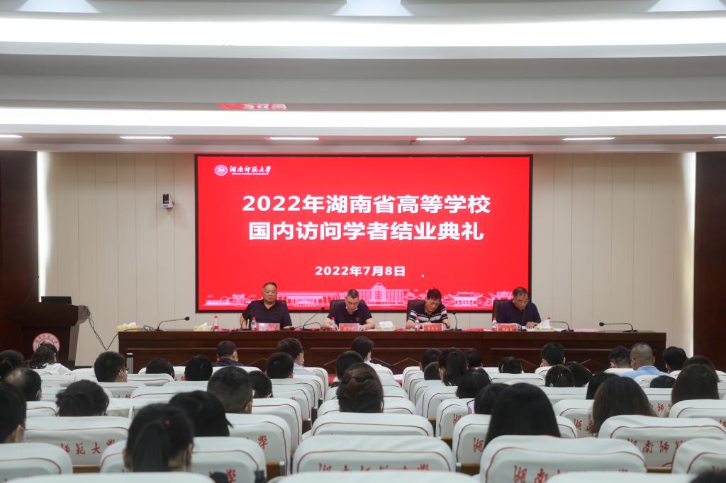 (記者 馮振輝 劉姣)7月8日上午,2022年湖南省高等學校國內訪問學者結業典禮在我校中和講堂舉行。我校副校長蔣新苗出席典禮。典禮由湖南省高校師資培訓中心常務副主任彭運石主持。
