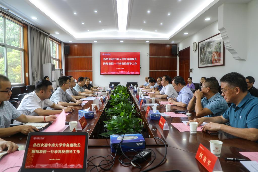 (記者 馮振輝 劉姣)7月20日下午,中南大學(xué)常務(wù)副校長(zhǎng)陳翔一行來(lái)到我校,針對(duì)芙蓉實(shí)驗(yàn)室籌建、學(xué)校學(xué)科及人才隊(duì)伍建設(shè)等工作,對(duì)生命科學(xué)學(xué)院、醫(yī)學(xué)院、化學(xué)化工學(xué)院進(jìn)行調(diào)研指導(dǎo)。調(diào)研座談會(huì)由我校校長(zhǎng)劉起軍主持。