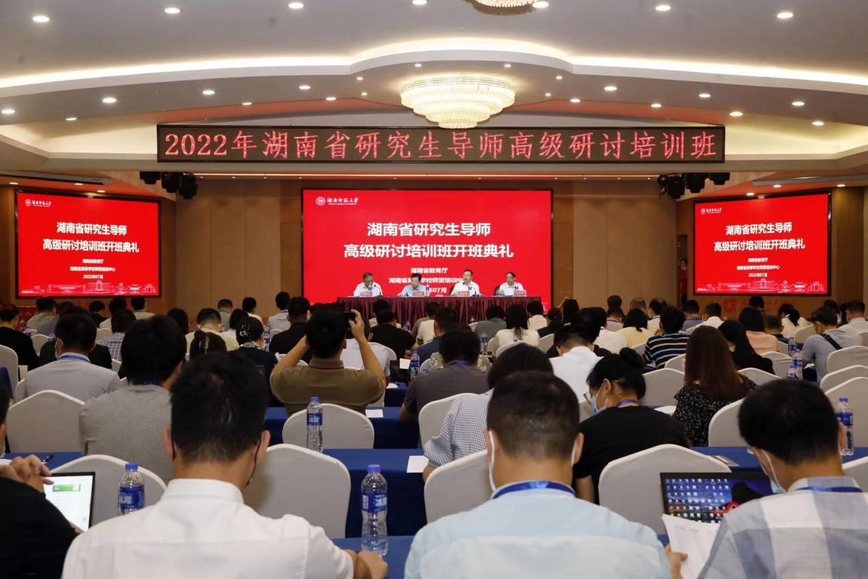 (通訊員 羅帥)7月21日上午,我校舉行湖南省研究生導師高級研討培訓班開班儀式。省教育廳學位管理與研究生教育處三級調研員唐利斌、我校副校長劉懷德出席儀式。儀式由省高等學校師資培訓中心副主任姚新良主持。