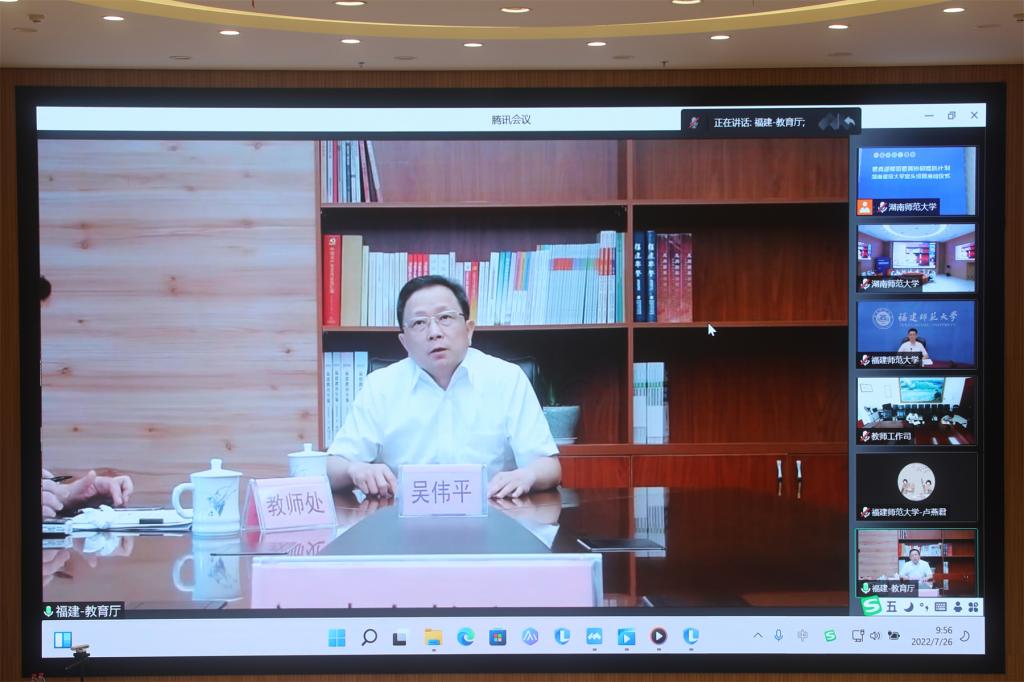 王玉清指出,湖南省教育廳堅決落實計劃實施各項工作要求,全力服務保障、全程跟蹤對接、全面督促指導,共同開啟師范教育工作的新局面;吳偉平強調,福建省教育廳將集合全省教育資源支持福建兩所高校做好幫扶工作,構建協同提質共同體;寧夏回族自治區教育廳教師工作處處長馬建林表示,寧夏回族自治區教育廳將主動加強溝通協調,搶抓機遇,創造條件,支持項目的實施,推動寧夏師范學院高質量發展。