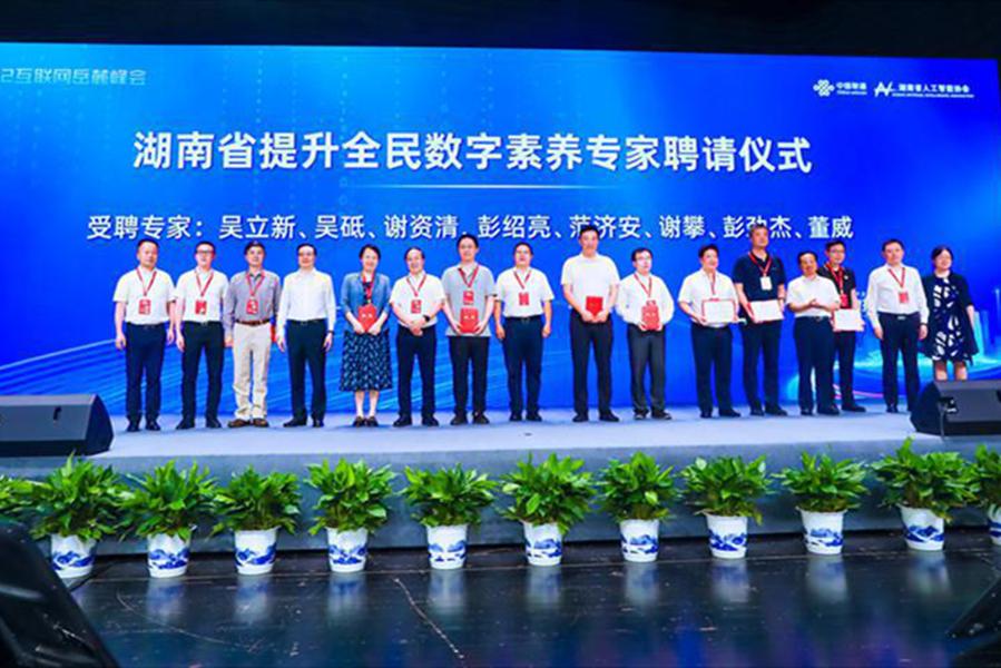 活動現場,與會領導為謝資清等8名專家頒發“湖南省提升全民數字素養專家”聘書。